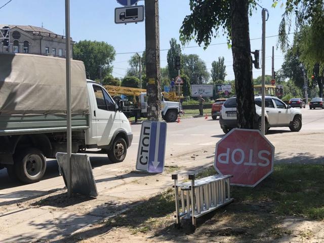 Установку новых дорожных знаков проводит подрядчик на пересечении проспектов Свободы и Аношкина 3 июля.