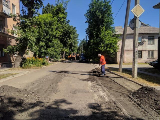 Ямочный ремонт дорожного покрытия стартовал по улице Иосифа Манаенкова (бывш. Комунарная) утром 4 июля в Каменском.