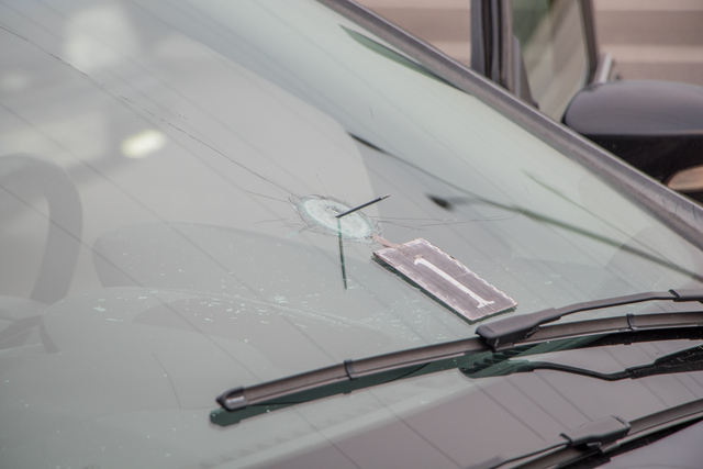 Пуля насквозь пробила лобовое стекло автомобиля. Водитель вызвал на место полицейских. Сейчас следственно-оперативная группа опрашивает водителя.