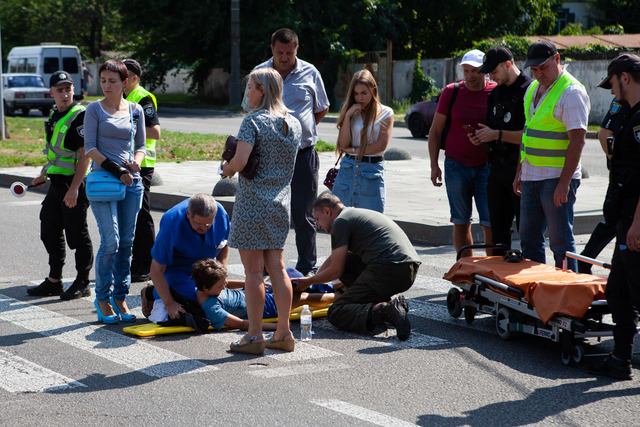 На место происшествия приехали несколько экипажей патрульной полиции и две кареты скорой помощи. По словам сотрудников патрульной полиции, предварительно водитель Lanos двигался на желтый сигнал светофора. Двоюродный брат пострадавшего рассказал, что они переходили дорогу на зелёный. «Как только загорелся зелёный, мы начали переходить дорогу. Брат резко побежал и его сбили», — рассказал брат пострадавшего.