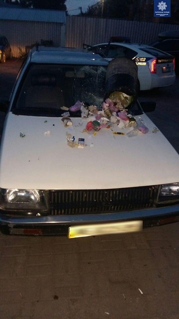 Зі слів заявника, громадянин кинув урну зі сміттям в лобове скло його автомобілю. Після чого він затримав чоловіка.