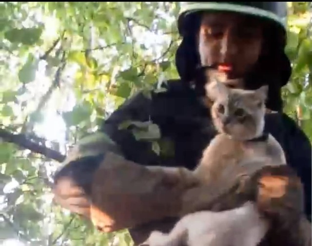 Сразу, по указанному адресу было направлено дежурное отделение 5-й государственной пожарно-спасательной части Главного управления ГСЧС Украины в Днепропетровской области.По прибытию на место происшествия чрезвычайники установили, что серый кот по имени «Снежок» находится на дереве на высоте 10 ти метров.