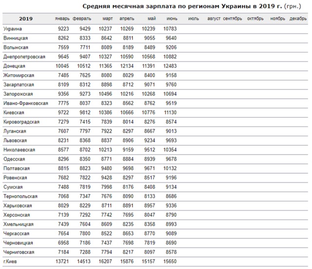 Средняя зарплата по области за июнь 2019 года составила 10882 гривен, увеличившись по сравнению с маем на 314 гривен, передает Минфин.Так, согласно данным Минфина, средняя зарплата по Украине в июне 2019 года составила 10783 грн. В то же время заработная плата по Днепропетровской области опережает этот показатель.