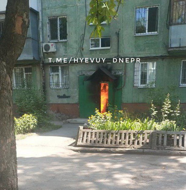 По указанному адресу было направлено дежурное отделение 3-й и 18-ой государственных пожарно-спасательных частей 8-го государственного пожарно-спасательного отряда Главного управления ГСЧС Украины в Днепропетровской области.Прибыв на место, спасатели установили, что пожар возник на первом этаже пятиэтажного жилого дома (горели входные двери в подъезд).
