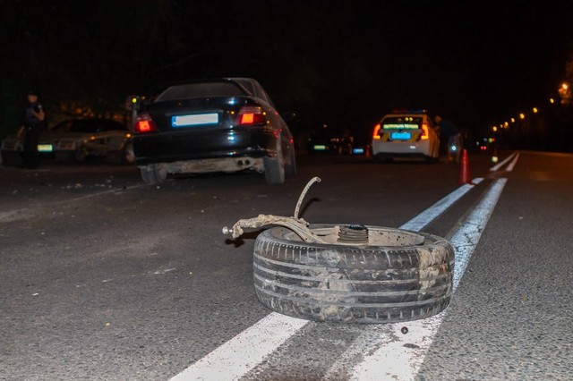 От удара у Honda оторвалось колесо. Происшествие обошлось без жертв, но на какое-то время авария ограничила движение транспорта в одной полосе.