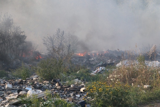 На поле валяется много мусора, в том числе и строительного, который тоже загорелся. Площадь пожара, как и причины, пока неизвестны — их будут выяснять правоохранители.