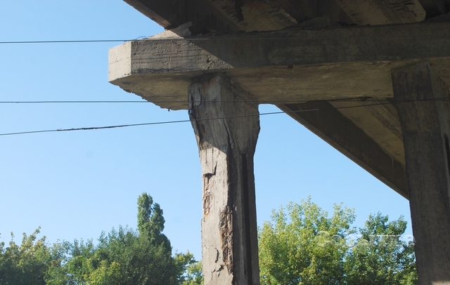Журналист побывал на мосту. Осмотрел, в каком состоянии находится его основание. Конечно, сотрудники газеты не эксперты в данном вопросе. Но визуально заметно, что в некоторых местах бетонное основание моста начало разрушаться.