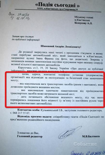 Тем временем, в СМИ все чаще появляются публикации о том, что под тяжестью перегруженных авто проваливаются мосты. С учетом сказанного, журналист "События" решил поинтересоваться: а все ли в порядке с этим вопросом у нас в городе.