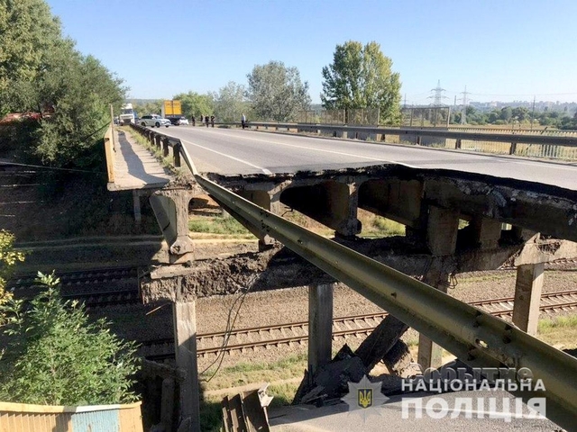 - фото обвала моста 25 августа 2019 г. на окружной дороге Харькова.