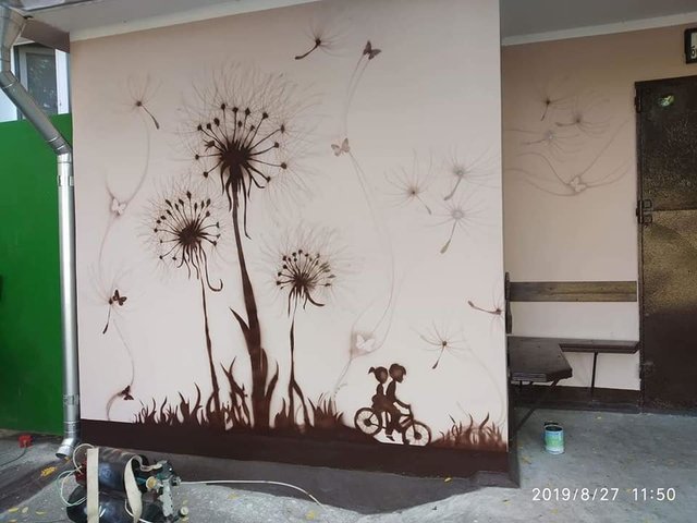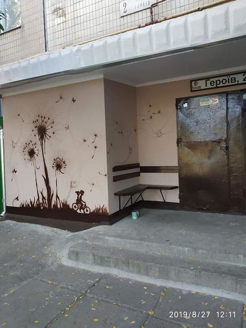 Как рассказал автор рисунка на подъезде, то ремонт крыльца они делают совместно с соседями уже около 2 месяцев. Само граффити – это завершение ремонта, которое Виталий Скрипченко нарисовал сегодня, 27 августа, примерно за 4 часа. По его словам, рисунок такого масштаба он нарисовал впервые – решил попробовать для себя.