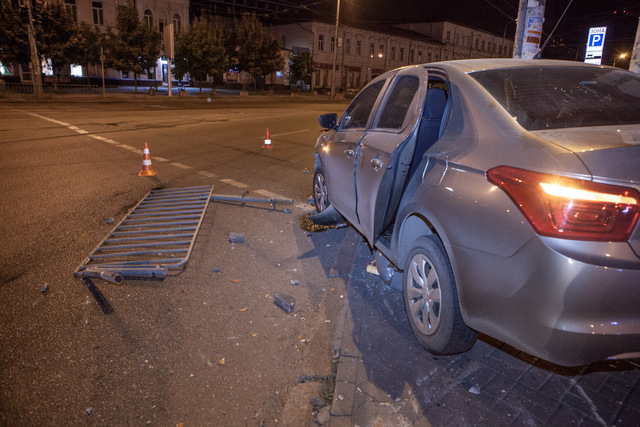 В среду, 4 сентября, в 01:30 на проспекте Яворницкого произошло ДТП. Автомобиль Citroen C-Elysee снес оградительный забор и выехал на тротуар.