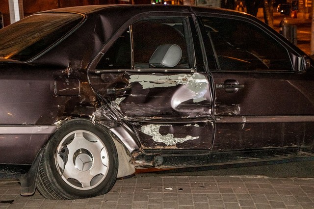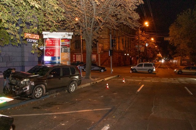 В пятницу, 20 сентября, на пересечении проспекта Дмитрия Яворницкого и улицы Михаила Грушевского столкнулись Nissan и Mercedes. Удар оказался достаточно сильным: автомобили отбросило на тротуар.