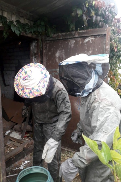 Спасатели в защитных костюмах с помощью специального инструмента срезали гнездо и изъяли его для дальнейшего уничтожения.