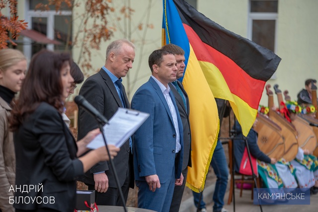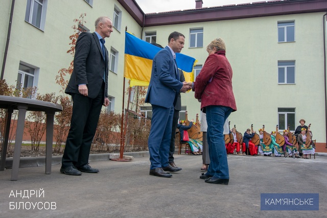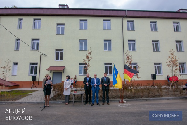 Открывали новый объект социального жилья Каменской городской голова Андрей Белоусов, вице-консул Германии в Донецке Питер Шмаль и исполнительный директор Украинского фонда социальных инвестиций Андрей Лактионов.