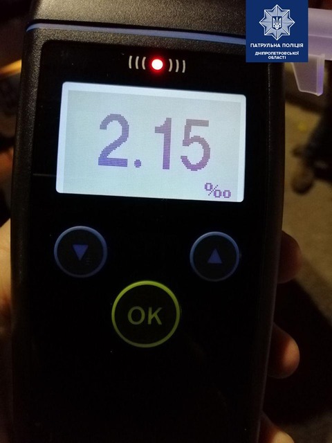 Во время общения с мужчиной полицейские заметили у него признаки алкогольного опьянения и предложили пройти освидетельствование. Тот согласился. Результат драгера - 2,15 промилле алкоголя в крови водителя.