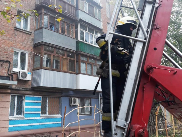 27 октября в 10:00 в Службу спасения «101» поступило сообщение о том, что по улице Инженерной Шевченковского района города Днепр, кот находится на дереве и не может самостоятельно спуститься с него.