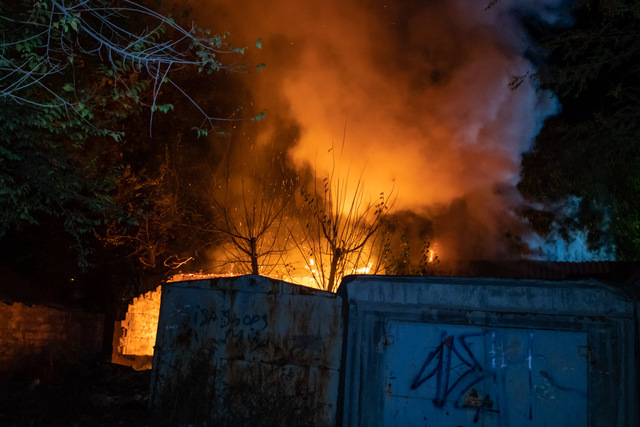 Пожар оказался достаточно сильным: для его ликвидации пришлось задействовать сразу три бригады 18-й пожарно-спасательной части. Пока спасатели боролись с огнем, улицу окутал густой и едкий дым.