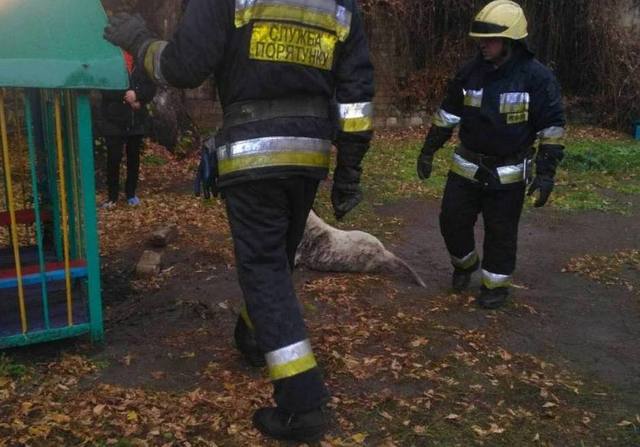 Как оказалось, собака застряла на детской площадке садика под железным домиком.Для оказания помощи были направлены спасатели 2 государственной пожарно-спасательной части Главного управления ГСЧС Украины в Днепропетровской области.