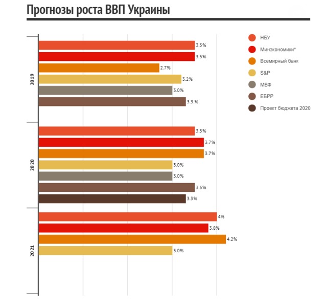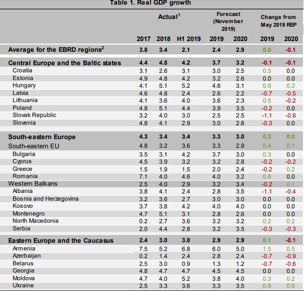 Европейский банк реконструкции и развития (ЕБРР) ожидает роста валового внутреннего продукта (ВВП) Украины в 2019 году на уровне 3,3%, а в 2020-м – 3,5%, тогда как в мае прогнозировал 2,5% и 3% соответственно.