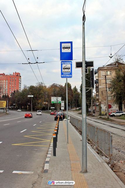 Єдиний нюанс — нова зупинка ГТ розміщена надто близько до пішохідного переходу, що потенційно може викликати аварійні ситуації. Але все ж сам факт влаштування зупинки не там, де вирішив якийсь чиновник, а там, де людям це справді необхідно, дуже тішить! А перша антикишеня, сподіваюся, стане каталізатором грамотної організації реконструкцій зупинок ГТ в Дніпрі, які нині знаходяться у вкрай незадовільному стані».