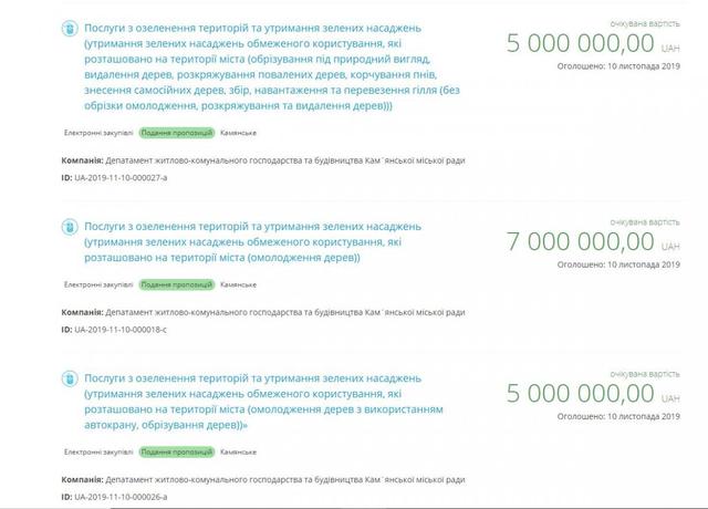 Так, например, за 5 млн гривен подрядчику будет необходимо омолодить 55 старых деревьев (лиственных пород в сложных условиях с использованием автокрана) и проредить кроны 1 572 деревьям (тоже в сложных условиях).