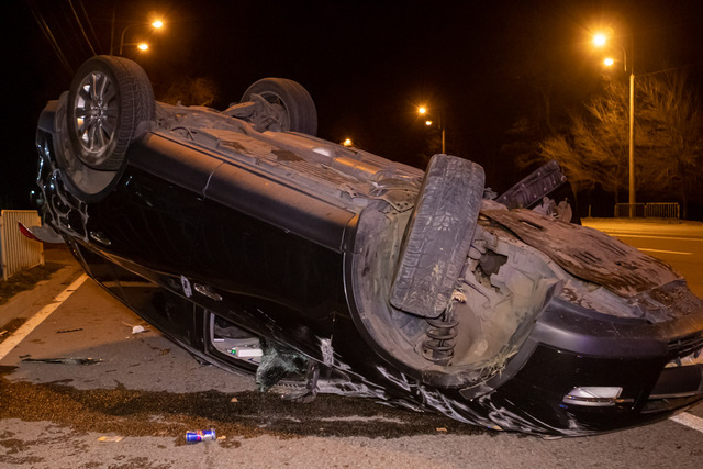 В ночь с воскресенья на понедельник на проспекте Слобожанском перевернулся автомобиль Mazda.