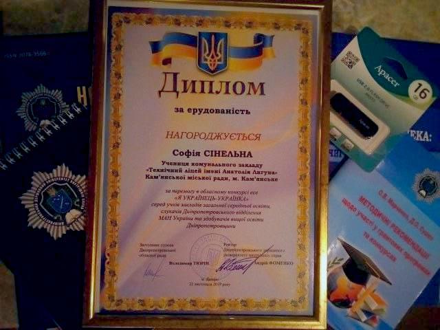 Победителями и призерами конкурса стали восемь слушателей Днепропетровского отделения МАН. В их числе - две школьницы из Каменского: София Синельная, учащаяся технического лицея им. Лигуна, и София Шапа, десятиклассница средней школы №38 им.Секретнюка.