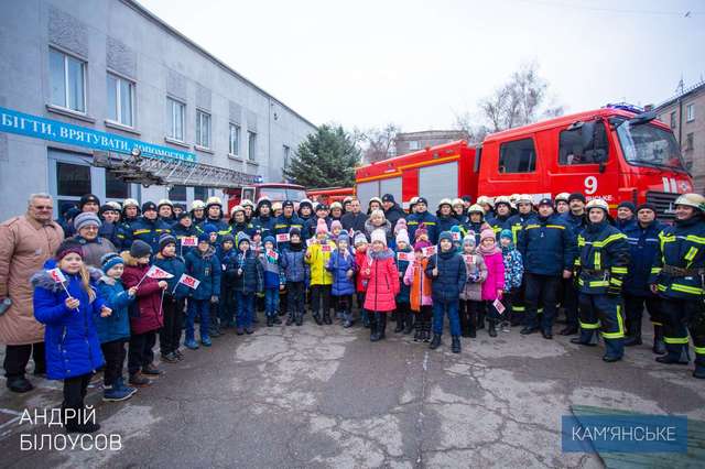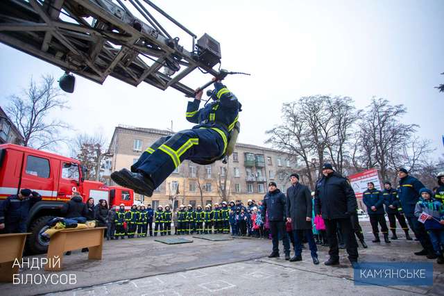 На мероприятии присутствовали Каменской городской голова Андрей Белоусов, заместитель начальника Главного управления по реагированию на чрезвычайные ситуации ГСЧС Украины в Днепропетровской области Александр Шевченко, начальник Каменского городского управления Владимир Ярема, ветераны спасательной службы, личный состав и ученики младших классов 30-й школы.