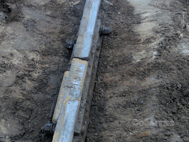 Сотрудники КП «Транспорт» производят замену участка рельса длиной около 3 метров, который лопнул и прогнулся на днях.
