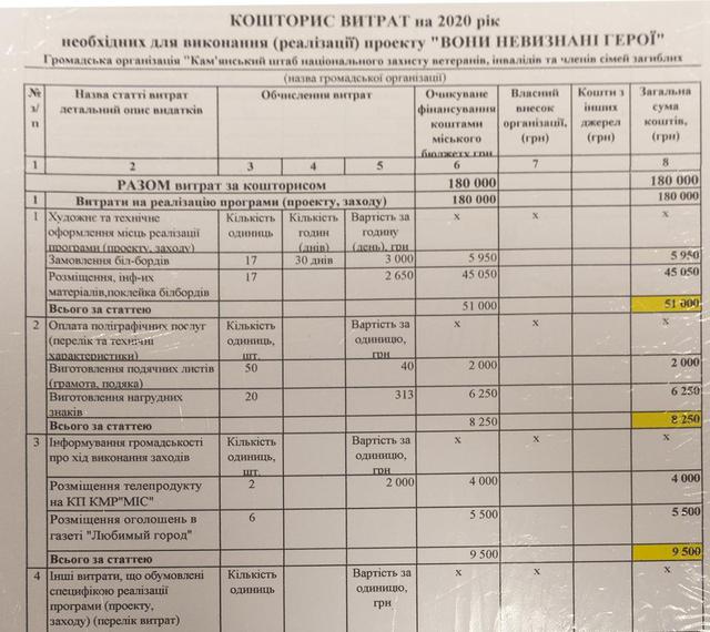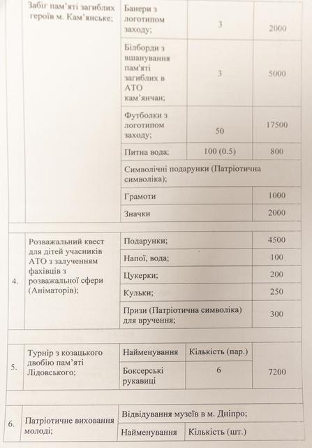Неоднозначным можно назвать и финансирование размещения рекламных билбордов с поздравлениями, заказ сюжетов на «МИС-ТВ» и в одной из городских газет, которое за счет бюджета планирует сделать «Каменской штаб национальной защиты». Всего на сумму более 60-ти тысяч гривен.