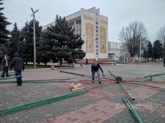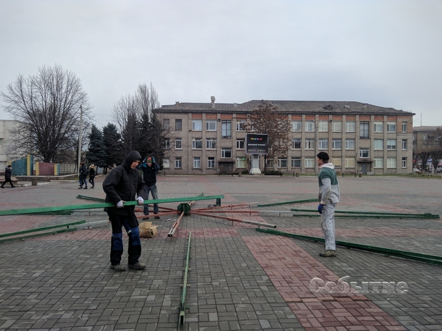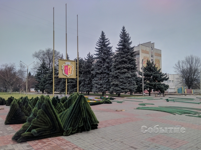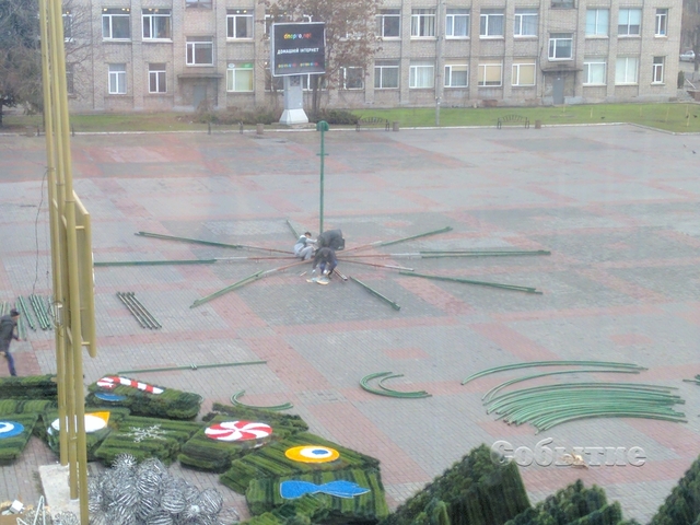 Главную елку Каменского собирают на площади Калнышевского в 10 утра 16 декабря. Как и в предыдущие годы, символ Нового года будет искусственным.