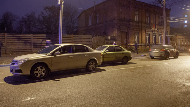 Проошествие случилось около 00:45. По предварительной информации, Toyota ехала по улице Гончара, а Opel — по Паторжинского. Как рассказал водитель Toyota, Opel не уступил ему дорогу и пытался проехать, но автомобили столкнулись. От удара Opel развернуло, и он задом «влетел» в Daewoo, который двигался по Паторжинского ему навстречу.В ДТП никто не пострадал. Изначально автомобили заблокировали движение по всей проезжей части Паторжинского, но впоследствии освободили одну полосу. На место прибыла полиция, правоохранители выясняют обстоятельства случившегося.