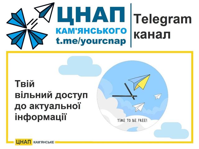 4. Telegram канал Каменского ЦНАП. Сервис позволит оперативно информировать всех подписчиков о последних новостях в сфере публичных услуг, сообщать о работе ЦНАП и обо всех доступных в Центре сервисах и услугах.