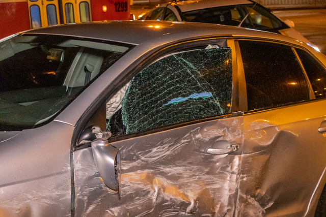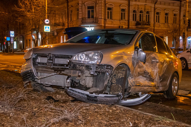 В среду, 1 января, около 22:30 на перекрестке проспекта Яворницкого и улицы Шмидта произошло ДТП с участием Porsche и Volkswagen. От удара второй автомобиль выехал на трамвайные пути.