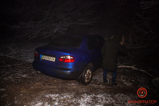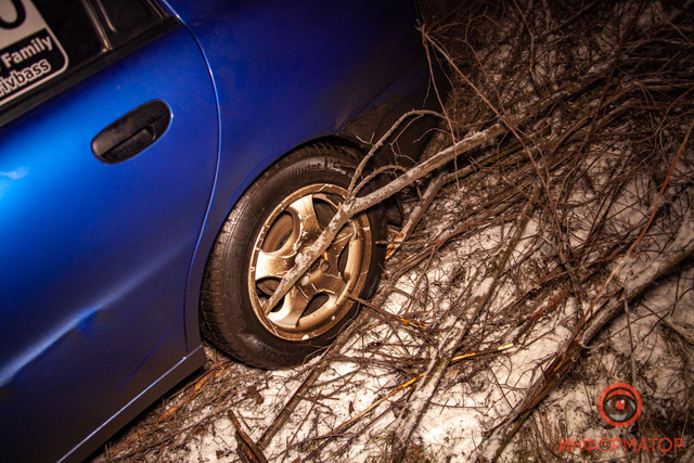 В Днепре за заводом «Днепрошина» Daewoo Lanos вынесло в кювет