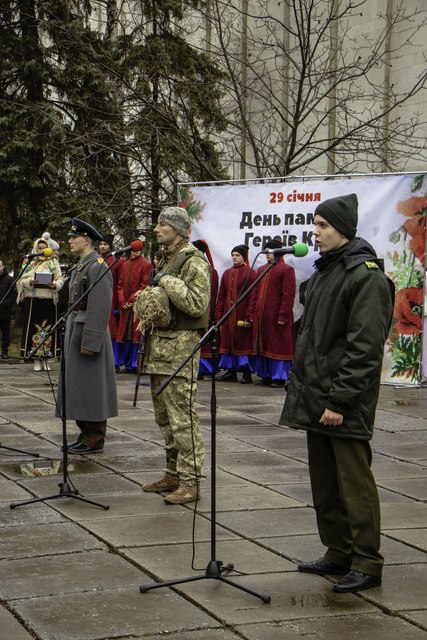 «29 января 1918 года состоялся бой под Крутами. Такие же юноши, как я сейчас, по 16 лет - студенты, гимназисты, юноши военной школы - отдали жизнь за Родину. Эти юные украинцы защищали свою землю, свой народ, поэтому для меня это пример мужества и героизма», - сказал воспитанник лицея таможенно-налогового дела с усиленной военно-физической подготовкой при Университете таможенного дела и финансов Богдан Дьяченко.