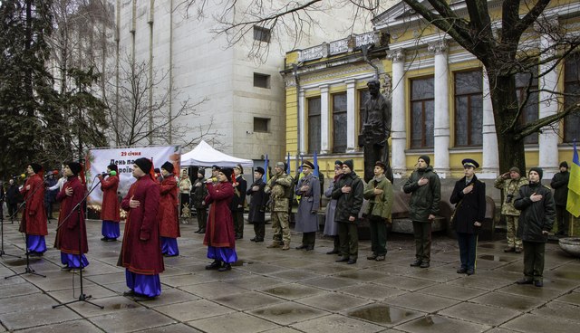 29 января в Днепре, возле памятника Дмитрию Яворницкому, состоялись торжества по случаю Дня памяти Героев Крут.