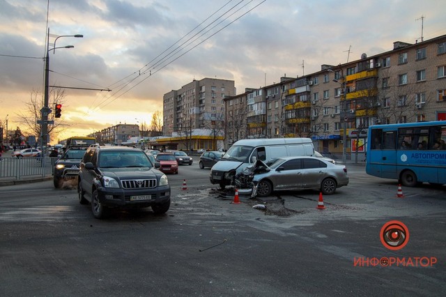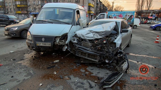 По предварительной информации от полиции, автомобиль Volkswagen двигался по Байкальской в сторону Слобожанского проспекта в крайней правой полосе. Он выезжал на перекресток и пытался повернуть налево, но не заметил ГАЗель, которая двигалась ему навстречу. В результате ДТП пострадал водитель Volkswagen. Он ударился головой. Водитель ГАЗели остался цел.