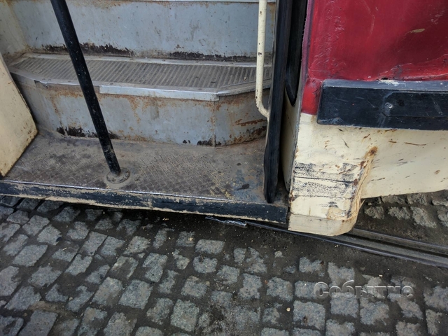 Удар был относительно несильный. Авто поцарапало, а на трамвайном вагоне остались только темные следы от бампера.