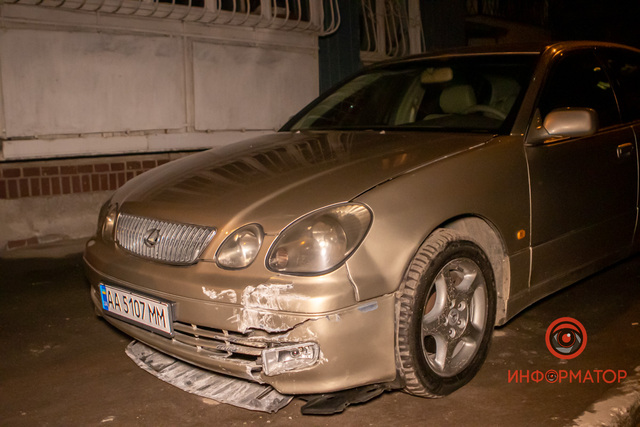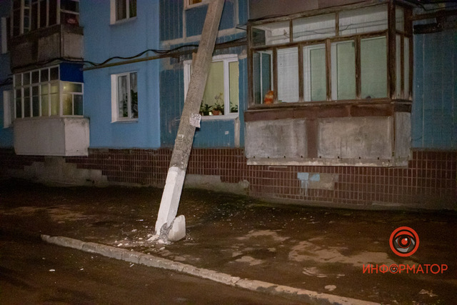 В Днепре на Гладкова водитель Lexus неудачно припарковался и повалил фонарный столб на балкон