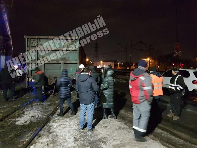 В Днепре на Левом берегу случилось уникальное ДТП. На ул. Яхненковской произошло столкновение автомобиля Тойота Прадо и.... железнодорожного состава, который находился на путях и совершал маневр.