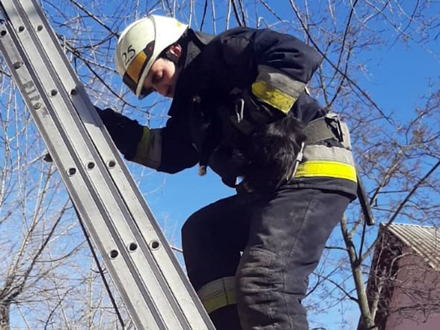 25-го февраля в 13:39 в Службу спасения «101» от взволнованного жителя поступило сообщение о том, что на улице Космонавта Волкова в Самарском районе города Днепр кот сидит на дереве и не может самостоятельно спуститься с него.