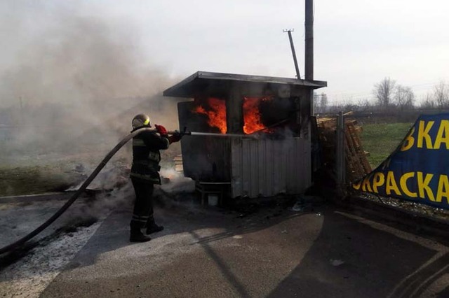 Вогнем пошкоджено внутрішню обшивку будівлі та особисті речі охоронця на площі 3 кв.м., а також моторний відсік, переднє праве колесо, лобове скло та салон автомобіля «Skoda Octavia» на площі 1,5 кв.м. Загальна площа займання склала 4,5 кв.м.
