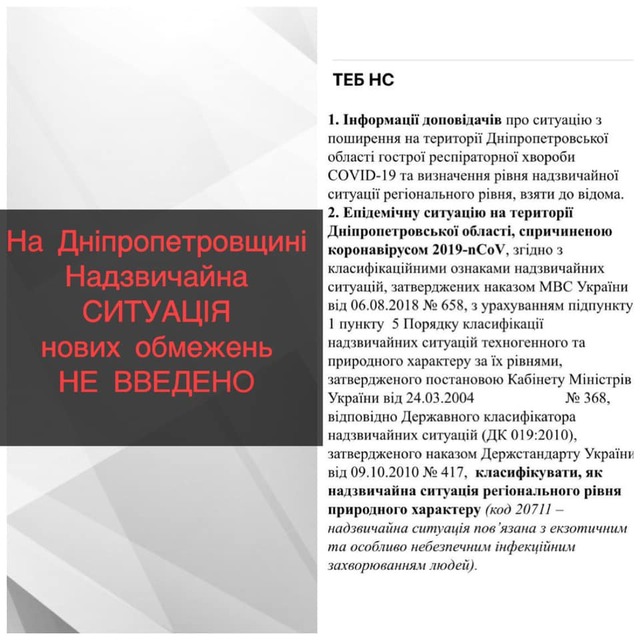 Чрезвычайная ситуация введена в Днепропетровской области. Решение носит формальный характер.