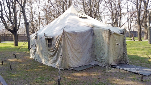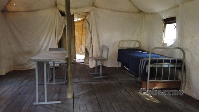 Внутри палатки пока никто не дежурит. Надеемся, что использовать ее не придется.
