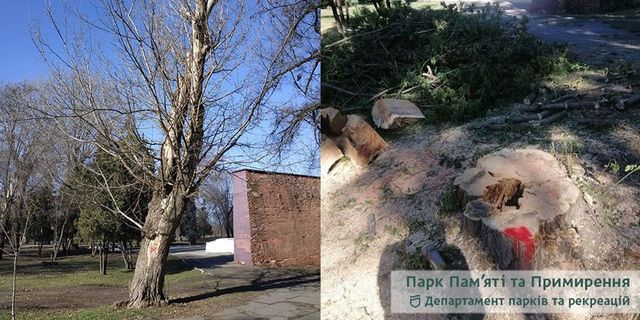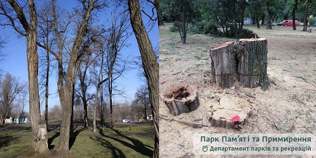 А теперь в Департаменте парков и рекреации Днепровского горсовета рассказали о том, сколько и почему было спилено деревьев в Парке памяти и примирения.