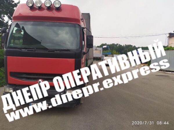 Водитель Renault не соблюдал безопасную дистанцию и задел прицепом рядом стоящий автомобиль. В результате вся левая часть авто Faw получила различные механические повреждения, а на двери образовалась вмятина.