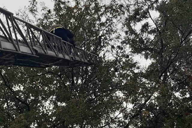 21-го жовтня о 14:07 до Служби порятунку «101» надійшло повідомлення, що на вулиці Макарова Чечелівського району міста Дніпро, кіт заліз на дерево та не може самостійно спуститись на землю.