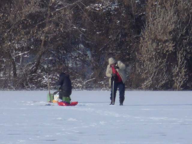 - Три штучки всего поймал. Здесь течения нет, а туда, где мы обычно сидим, пока рано, лед некрепкий…