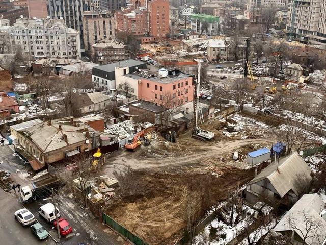 На ул. Исполкомовской, 23-25 в Днепре снесли старый особняк и полным ходом проводят подготовительные работы к строительству высотного жилого комплекса.